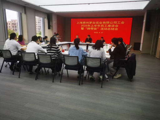 2025年4月27日,上海贵州茅台实业有限公司工会组织召开“师带徒”活动总结座谈会,3对结对师徒及公司领导、工会会员共20人参会。活动以“复盘经验、聚焦个体、共谋长效”为主线,通过案例分享、过程总结、成果晾晒等形式,系统梳理师徒结对经验,为实业公司人才挖掘和培养提供更广阔的思路。
