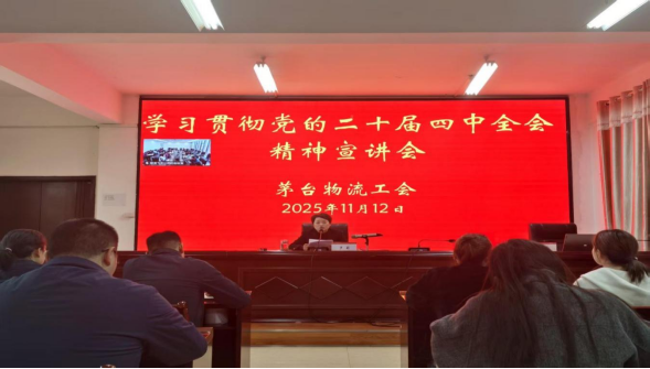 为深入学习贯彻党的二十届四中全会精神,切实把工会干部和广大职工的思想和行动统一到党中央决策部署上来,茅台物流工会于2025年11月12日组织召开党的二十届四中全会精神宣讲会。公司工会主席作专题宣讲,进一步引导全体会员深刻领会全会重大意义,准确把握核心要义,增强使命担当,在公司工会系统内迅速掀起学习宣传贯彻全会精神的热潮。各基层工会主席、委员及会员代表共计80余人参加会议。